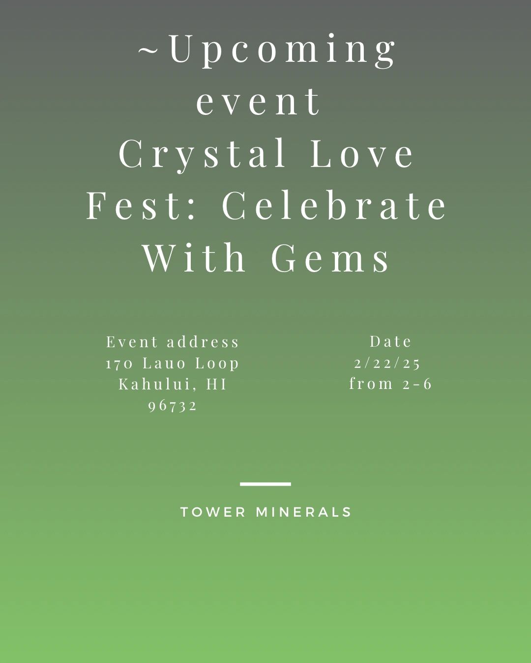 To show our appreciation Tower Minerals will begin the celebration with special giveaways, goodie bags at the door, music, refreshments, & a fantastic assortment of minerals from around the world to enjoy.